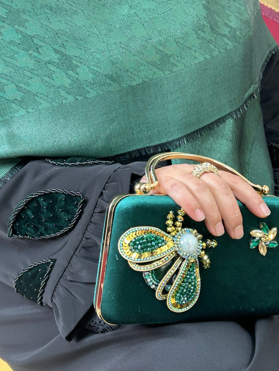 عبای تیکه دوزی جواهردوزی ارکیده سبز
